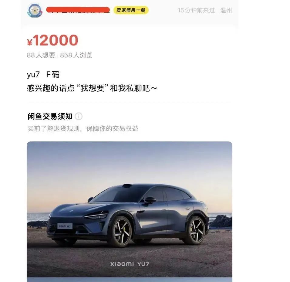 据蓝鲸新闻报道,21日,记者发现在二手平台有大量小米YU7的代抢订单。卖家声称,小米YU7代抢战绩可查,成功率99%,全国首批提车等。代抢费用普遍在1000~5000元,价格最高的可达1.2万元。