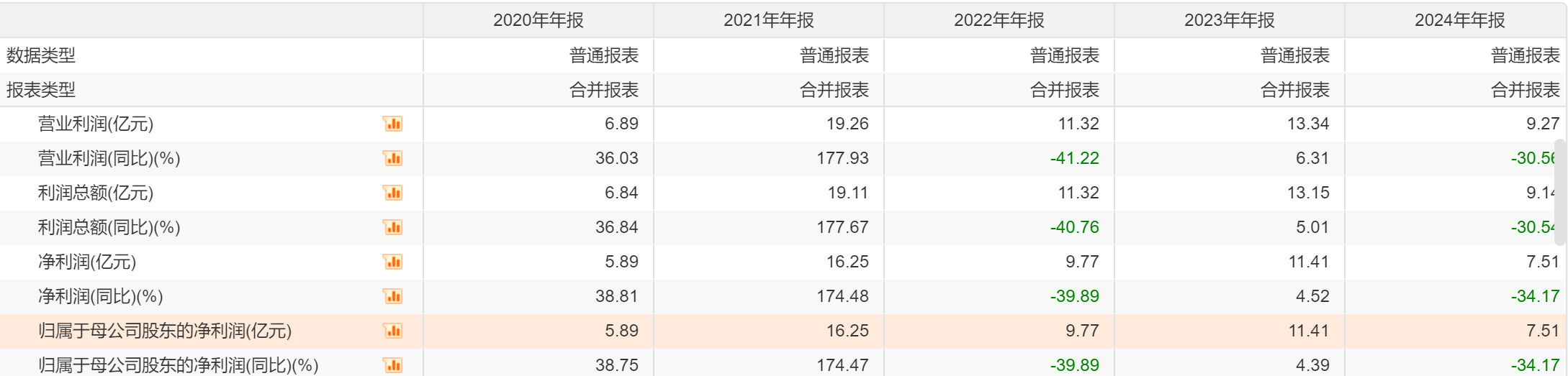 大中矿业主营铁精粉业务受挫,2021至2024年归母净利润从16.25亿元降至7.51亿元,跌幅53.78%。同期,铁矿石价格从1358元/吨跌至700元/吨,拖累业绩。