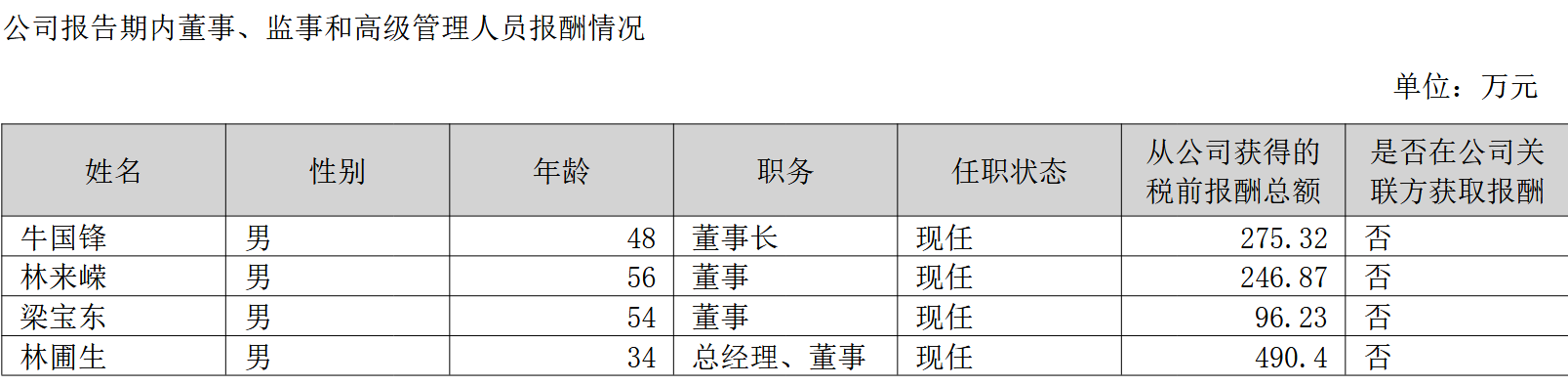 2023年3月,大中矿业实控人林来嵘之子、33岁的林圃生任总经理,其2024年年薪490.4万元,远超薪酬第二的董事长牛国锋的275.3万元及其他高管。