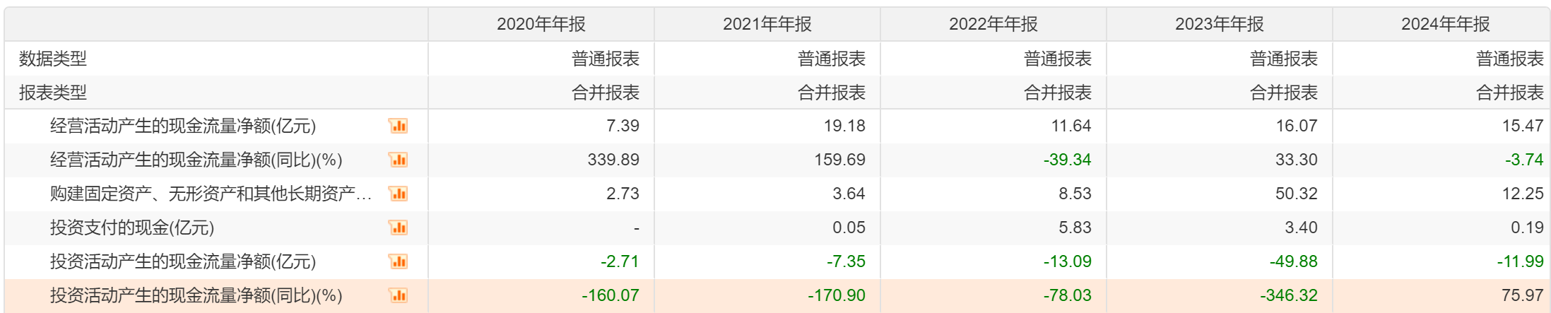 同期,公司投资性现金流四年净流出逾80亿元,年均流出近20亿元。2021年以来,公司通过可转债与银行借款筹资超过30亿元,资产负债率从40.24%升至2024年的57.76%。