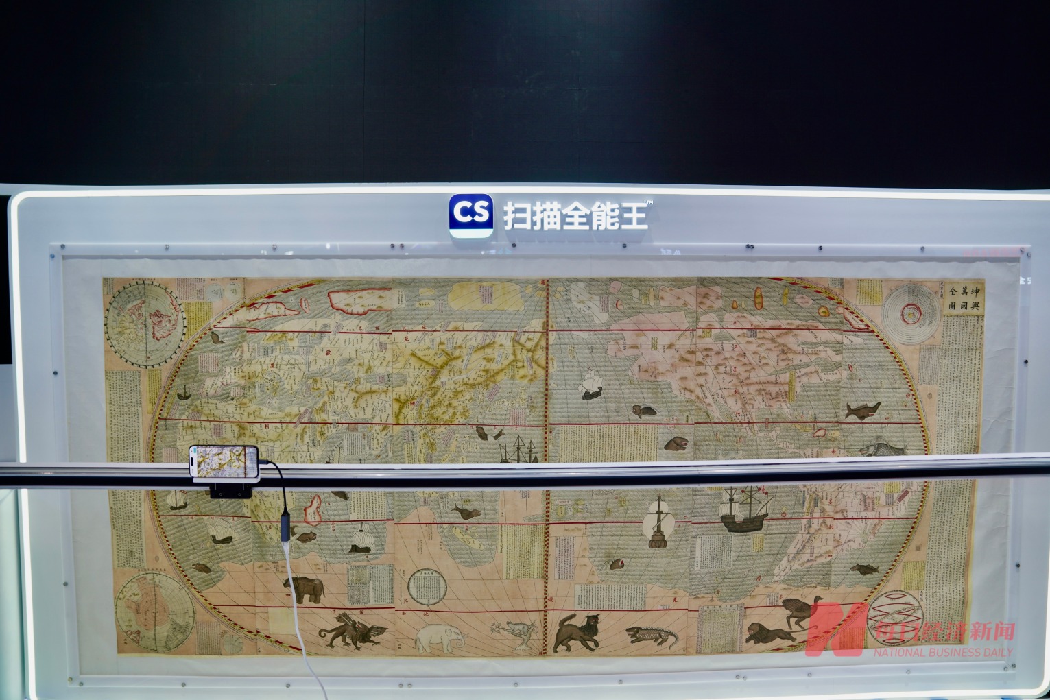 大会现场,合合信息旗下扫描全能王采用最新AI技术,可智能识别《坤舆万国全图》中的山河疆域、神奇动物等元素,当观众点击指定区域时,就能了解400多年前的人们对世界的认知,实现“让文物说话,让历史发声”的数字化体验。