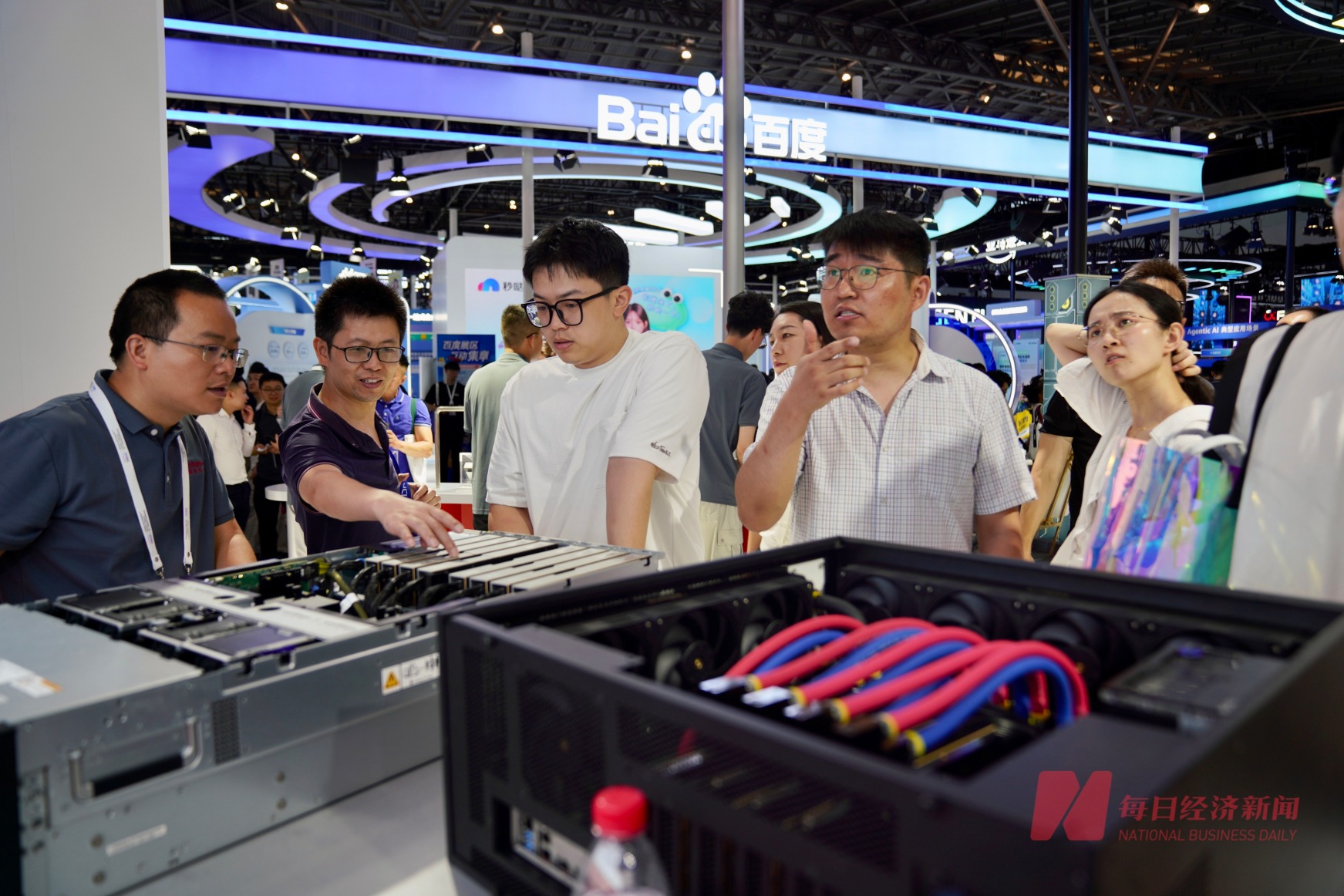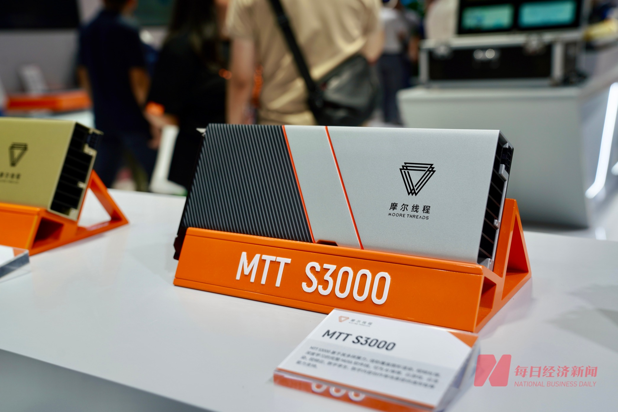 国产芯片厂商燧原展位,众多参展商在现场交流。