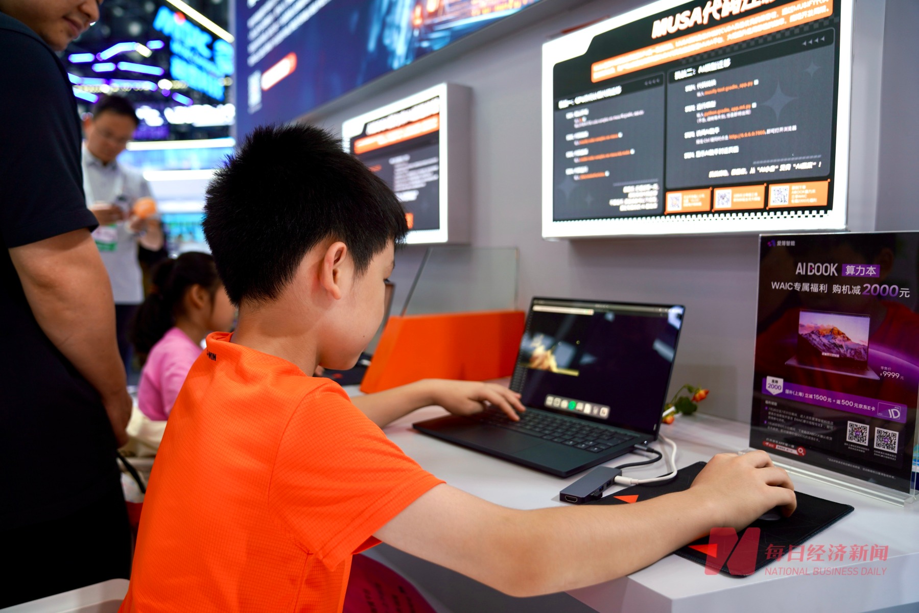 摩尔线程展位现场,小朋友正在体验编程。