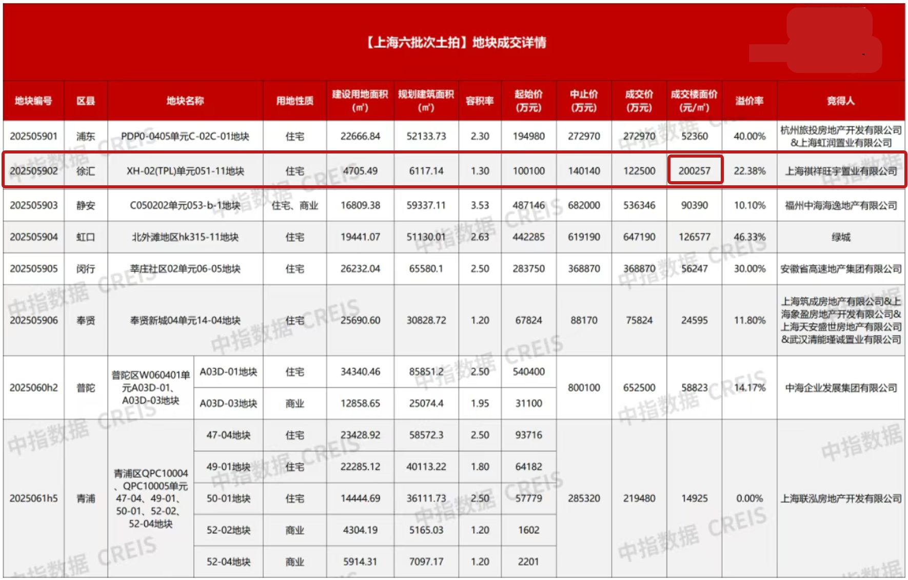 7月27日,备受市场关注的上海徐汇衡复风貌地块正式出让,最终被民营企业上海祺祥旺宇置业公司以总价12.25亿元、楼面价20.03万元/平方米、溢价率22.38%竞得,一举刷新了上海乃至全国涉宅用地楼面价纪录。此前该纪录为今年2月出让的上海静安寺C050101单元095-7地块,成交楼面价16万元/平方米。
