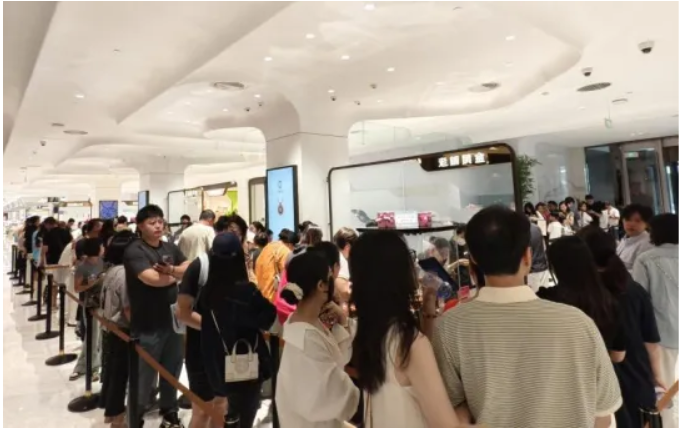 8月24日,老铺黄金产品年内第二次提价在即,券商中国记者实地探访了北京skp老铺黄金门店。商场刚开始营业不久,柜台前的队伍已经蜿蜒如龙,工作人员提示,如果彼时加入,至少需要2至3个小时才能进店。