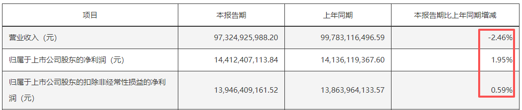 空调龙头格力电器8月28日晚披露2025年半年报,公司上半年实现营业收入973.25亿元,同比下降2.46%;归属于上市公司股东的净利润为144.12亿元,同比增长1.95%;扣非净利润为139.46亿元,同比微增0.59%。