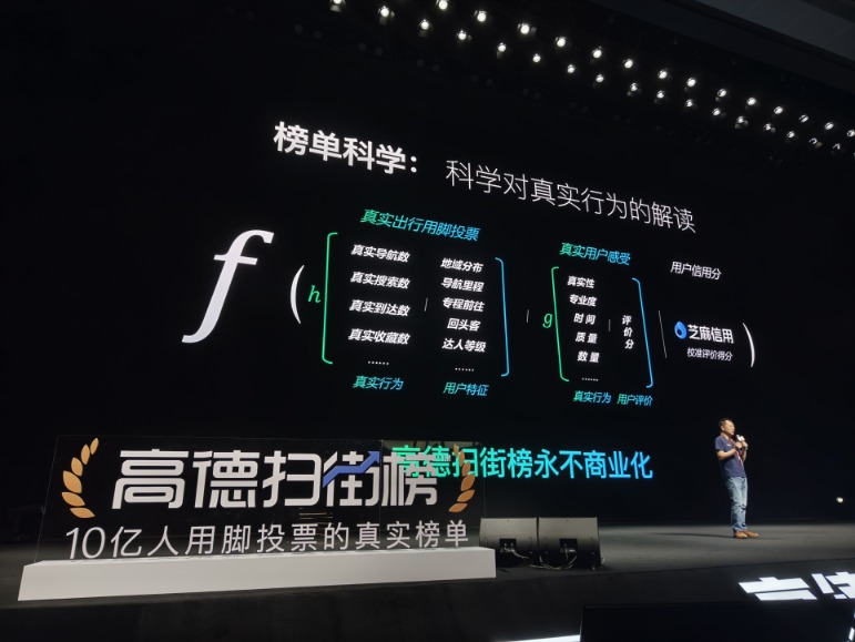 据介绍,高德扫街榜的核心是通过用户的“行为+信用”,确保这是一份无法刷分的真实可信榜单,从而重新构建一套线下服务的信用体系。