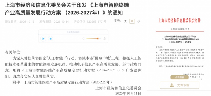 在产业生态环境优化行动方面,《行动方案》明确,提升金融对产业支撑力度。通过产业转型基金、先导基金等相关产业投资基金,加大对上海市终端企业融资支持。充分发挥国有资本母基金作用,引导社会资本、专业机构参与智能终端产业投融资,鼓励金融机构加强智能终端融资需求保障。发挥国有企业作用,支持各类企业积极参与智能终端产业发展,鼓励优质企业对关键环节开展并购收购。